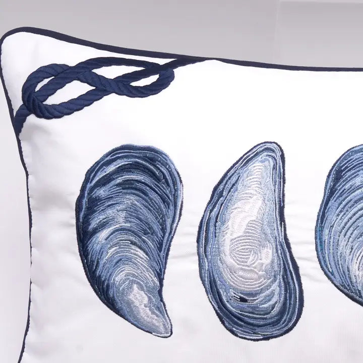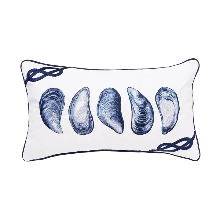 Featuring blue mussels, this lumbar pillow offers both style and comfort for your indoor or outdoor lounging with its minimalistic, yet elegant design. Fade resistant, mildew resistant, and machine washable, this durable pillow is made from Olefin performance fabric and features intricate embroidery. Easily clean by spraying down with a hose. Or, as an alternative for a deeper clean, remove insert and machine wash cold, air dry or machine dry low heat.